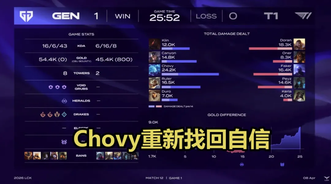 其实T1最近的状态一直不稳定,Doran对线频频被爆,Oner的节奏也时有时无。反观GEN,Chovy依旧稳定,Kiin越打越猛,Canyon的野区统治力也回来了,这场零封,算是给T1敲响了警钟。