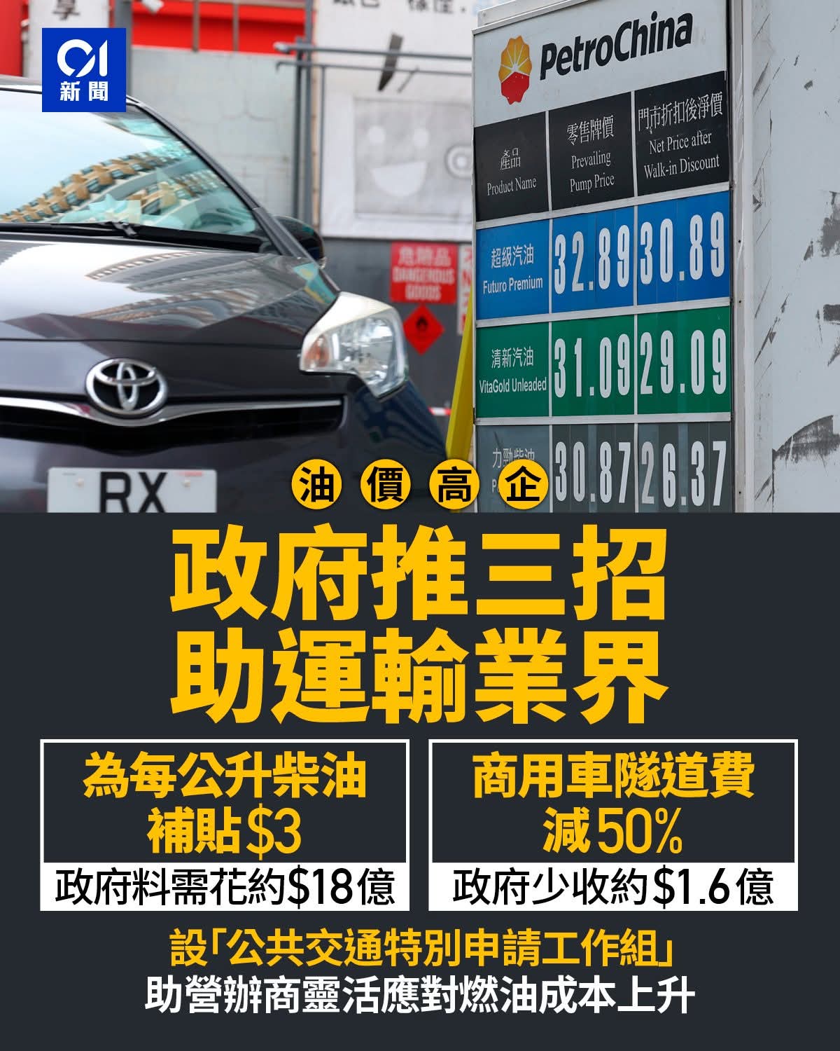 第一,每公升柴油补贴3港元,为期两个月。此举堪称对症下药。柴油是货车、巴士、渡轮乃至工业营运的血液,直接补贴柴油能最有效地减轻营运成本压力,防止加价潮向民生层面传导。预计动用约18亿港元公帑,换来的是公共交通及物流命脉的稳定,同时政府联同竞委会监察定价,确保补贴实惠落到用家而非油公司口袋,安排周密。