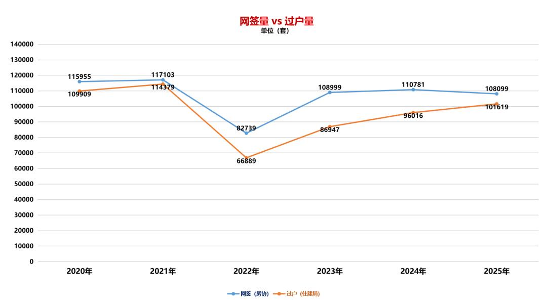 1)虽然网签量比2024年下降了,但过户量却上升了,且连续四年上升。市场在持续地健康发展。