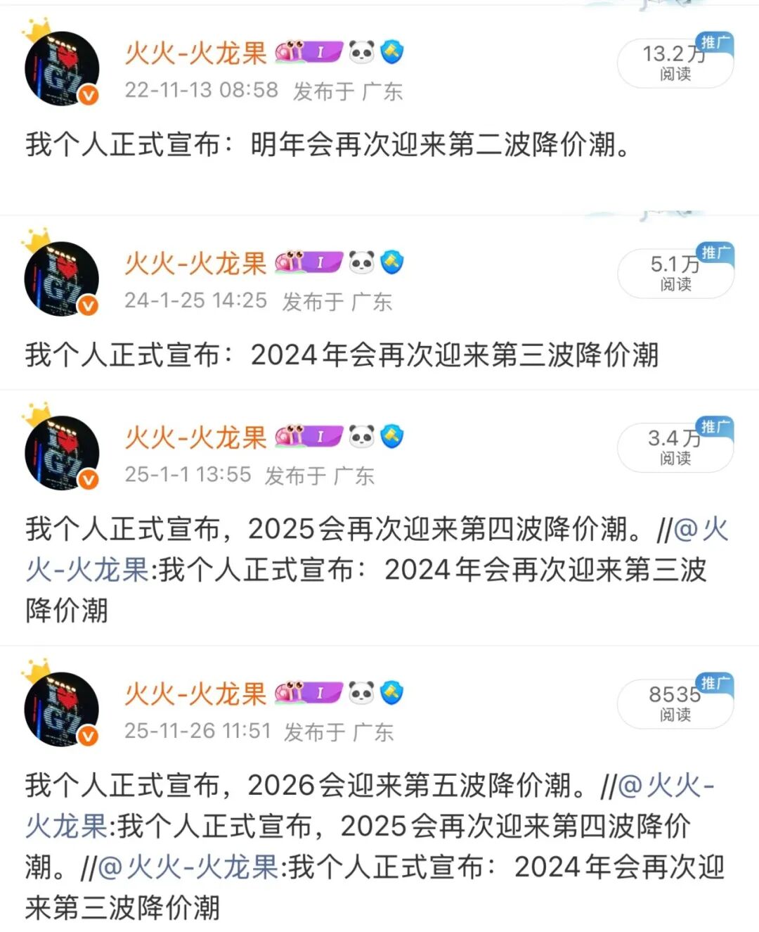 2022年底至2025年,还一直提醒大家注意降价潮。