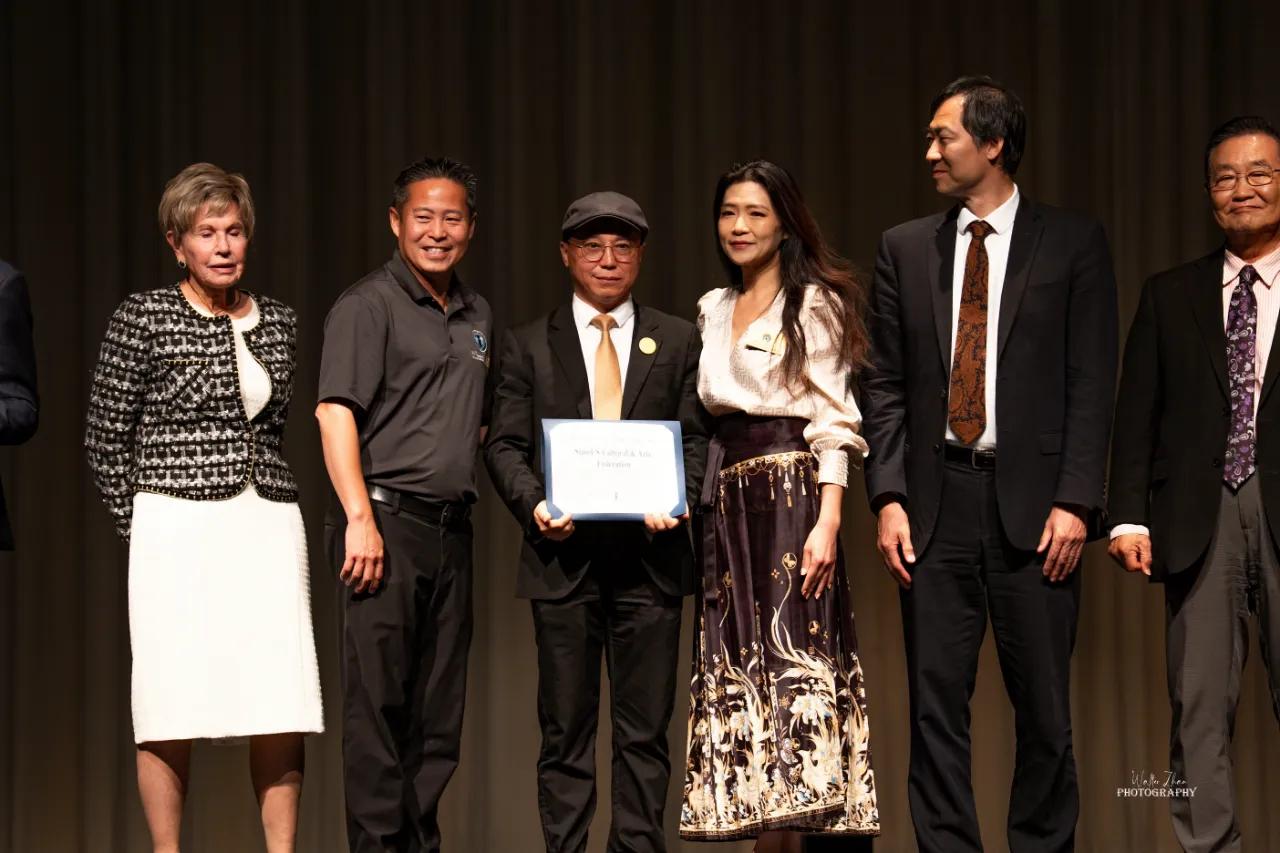 活动在庄重热烈的氛围中拉开帷幕。开场通过中美文化艺术联合会宣传片及中外艺术家祝福视频,全面展现中美文化交流的丰硕成果与广阔前景。应邀出席的贵宾包括中国驻洛杉矶总领馆领事陈凤华、加州州议员Steven Choi、尔湾市议员Melinda Liu、William Go、约巴林达市议员Janice Lim、拉古纳伍兹市长Annie McCary、副市长Pearl Lee、市议员Carol Moore,以及美国华人社团联合会代表Lisa刘律师,加州大学尔湾分校教授David Pan等政界、侨团、学术界代表。