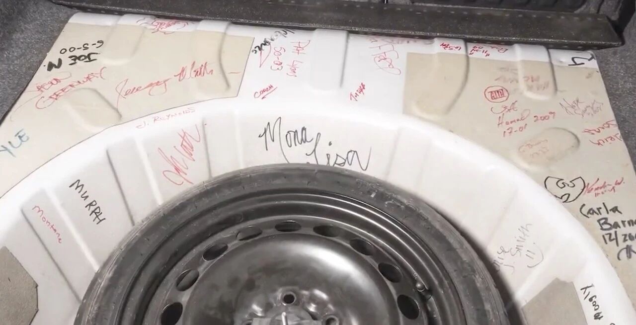 由于老人驾驶并不细心,车头满是划痕,博物馆不得不重新喷涂前杠并进行全车精洗,而在后备箱备胎周围,还保留着当年生产线工人留下的签名,这些珍贵的印记老人从未发现,得知自己的座驾成为历史文物后,她也十分欣慰。