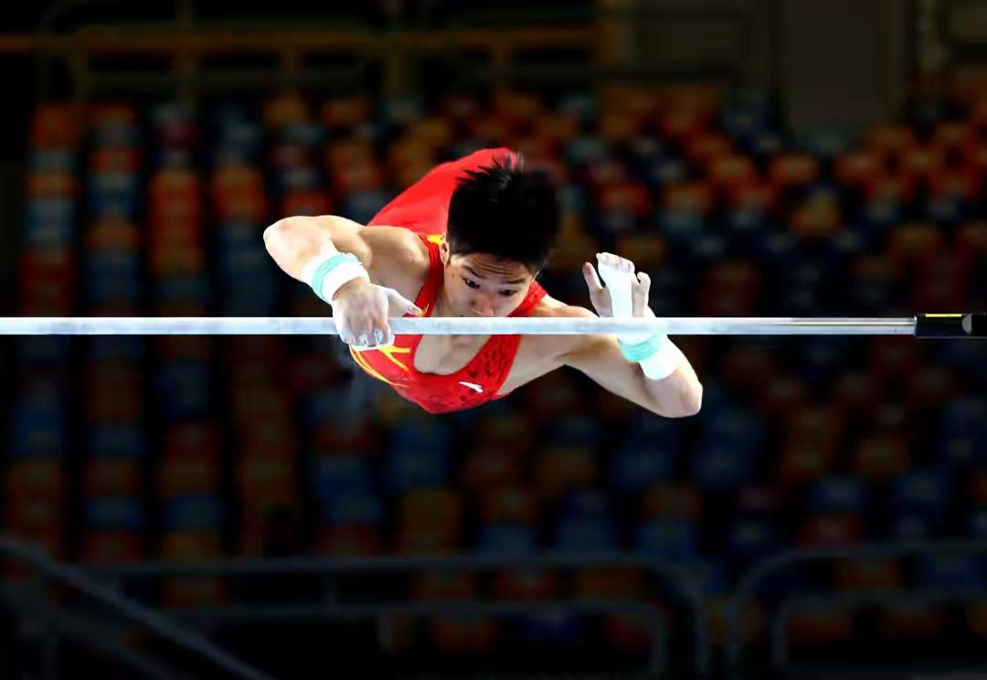 男子单杠历来是体操赛场上最具观赏性,同时也是难度与风险极高的项目之一,极其考验运动员的爆发力、空间感知力以及心理素质。决赛中,李鸿颜第三个登场,面对极其激烈的竞争环境,他展现出了超乎寻常的冷静与专注。起跳上杠后,他迅速进入状态,成套动作中的空翻与转体动作衔接得如同行云流水般自然流畅,没有丝毫的停顿与迟疑。在高高的单杠上,他的身体姿态保持得极为舒展,飞行抓杠动作干脆利落,每一次惊险的腾空都牢牢抓住了现场所有人的目光。在最关键的落地环节,李鸿颜稳稳站住,犹如钉子般扎根于垫子上。凭借着这套近乎完美的动作,裁判最终给出了14.400分的高分。李鸿颜毫无悬念地摘得这枚单杠金牌,用实力证明了自己在该项目上的顶尖水准。