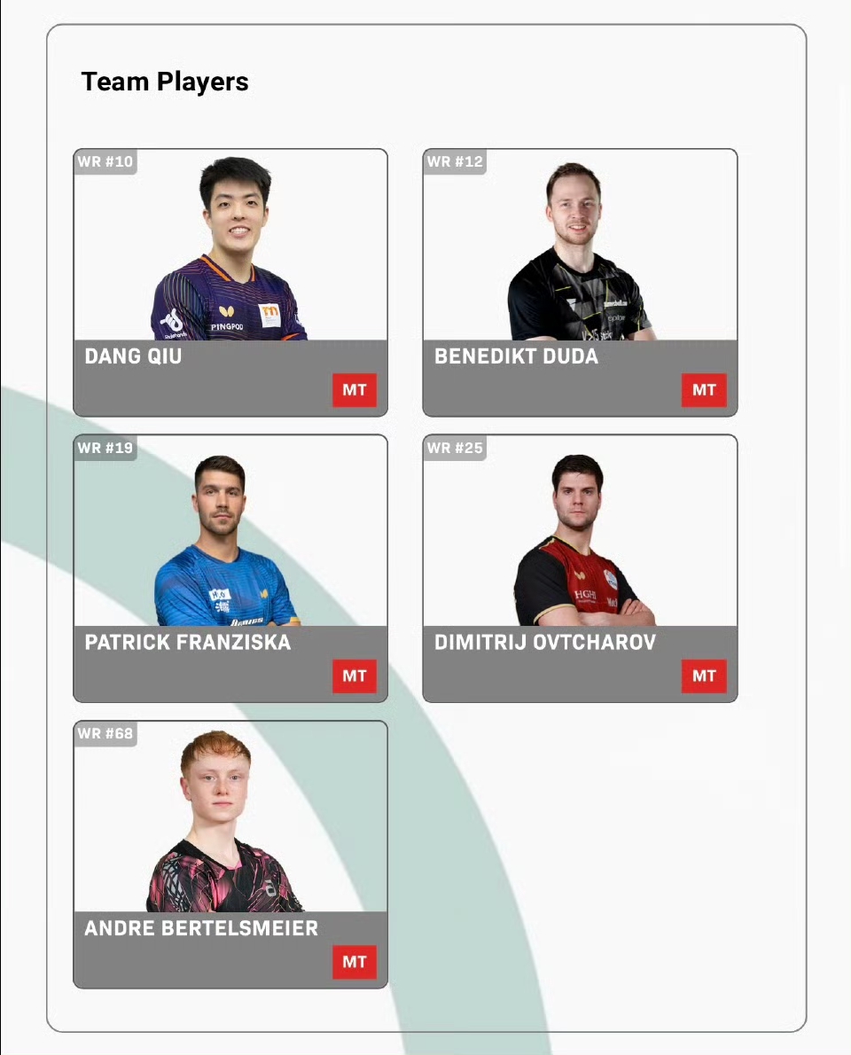 拥有邱党、杜达、弗朗西斯卡以及奥恰洛夫的德国男队也对冠军奖杯虎视眈眈。