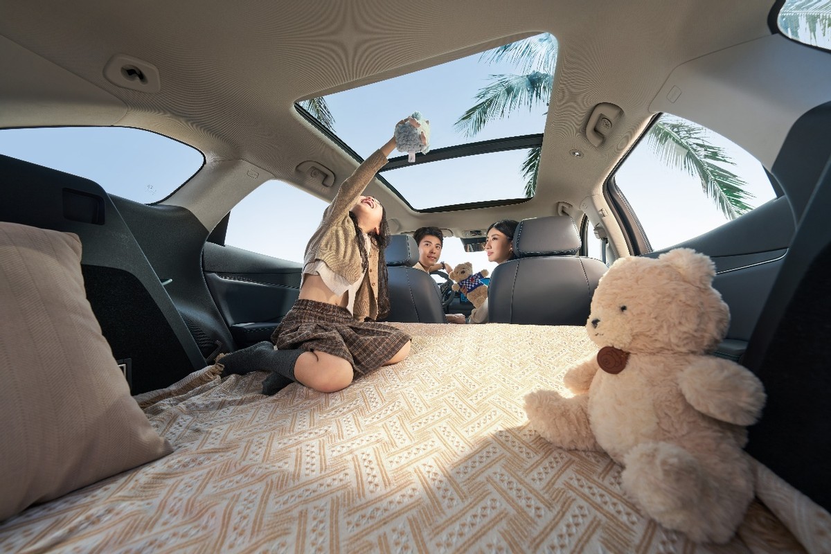 作为入门款车型,售价11.19万元,提供极汐绿、曜石黑全新车色,拥有200km纯电续航和3.15L亏电油耗,每百公里比同级燃油SUV节省近50元,日常用车成本更低,是省钱的出行好搭档;它拥有4850mm修长车身与2790mm超长轴距,带来宽适驾乘空间,后备箱容积高达670L,可放6个行李箱,后排座椅放倒后扩展至1535L,秒变“大床房”,并配备9个后备箱挂钩、电动尾门和车顶行李架,将旅行车的空间拓展性发挥到极致。