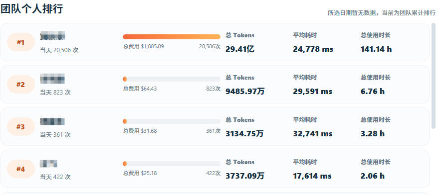 第 2 名只有 9485.97 万 Tokens,第 3 名 3134.75 万,第 4 名 3737.09 万。把这几行数据放在一起看,你就会明白,这已经不是“我更勤奋一点”,也不是“我比别人多做一点”,而是整个团队的试错压力,仍然高度集中在负责人身上。