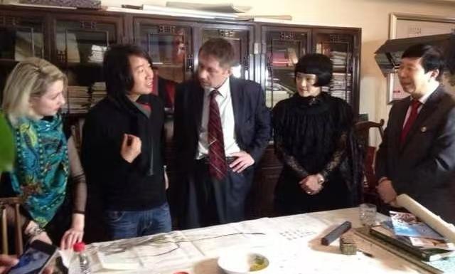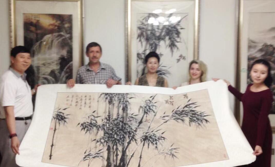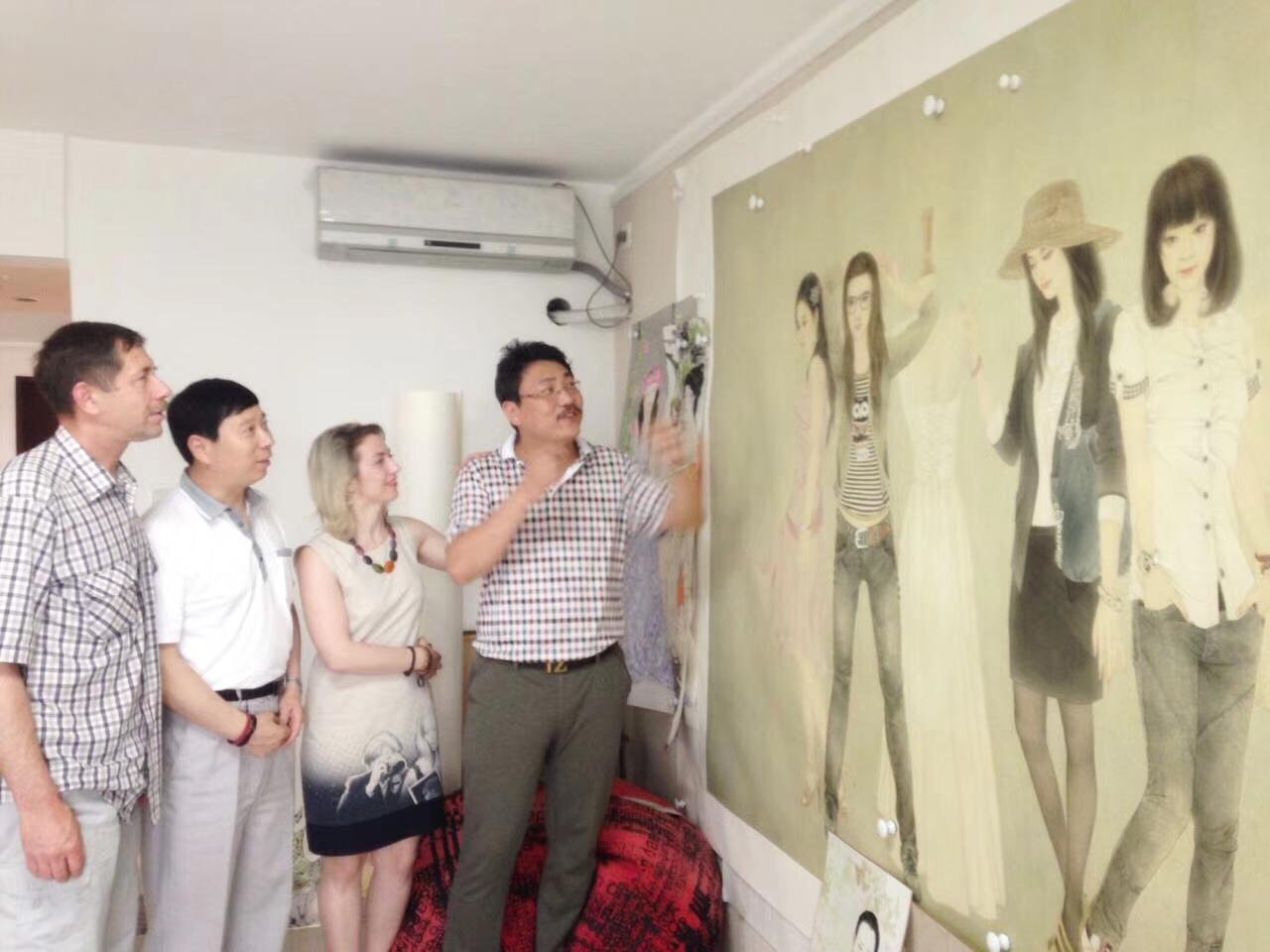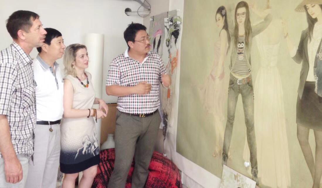 6月3日,刘瀚锴陪同白俄罗国家文联副主席伊戈尔·巴巴克,白俄罗斯国家广播电台资深记者、著名诗人、作家英娜等外宾,在河北省石家庄市举办的中外书画交流活动并参观了河北画院常务副院长,著名工笔人物画家崔景哲艺术馆。