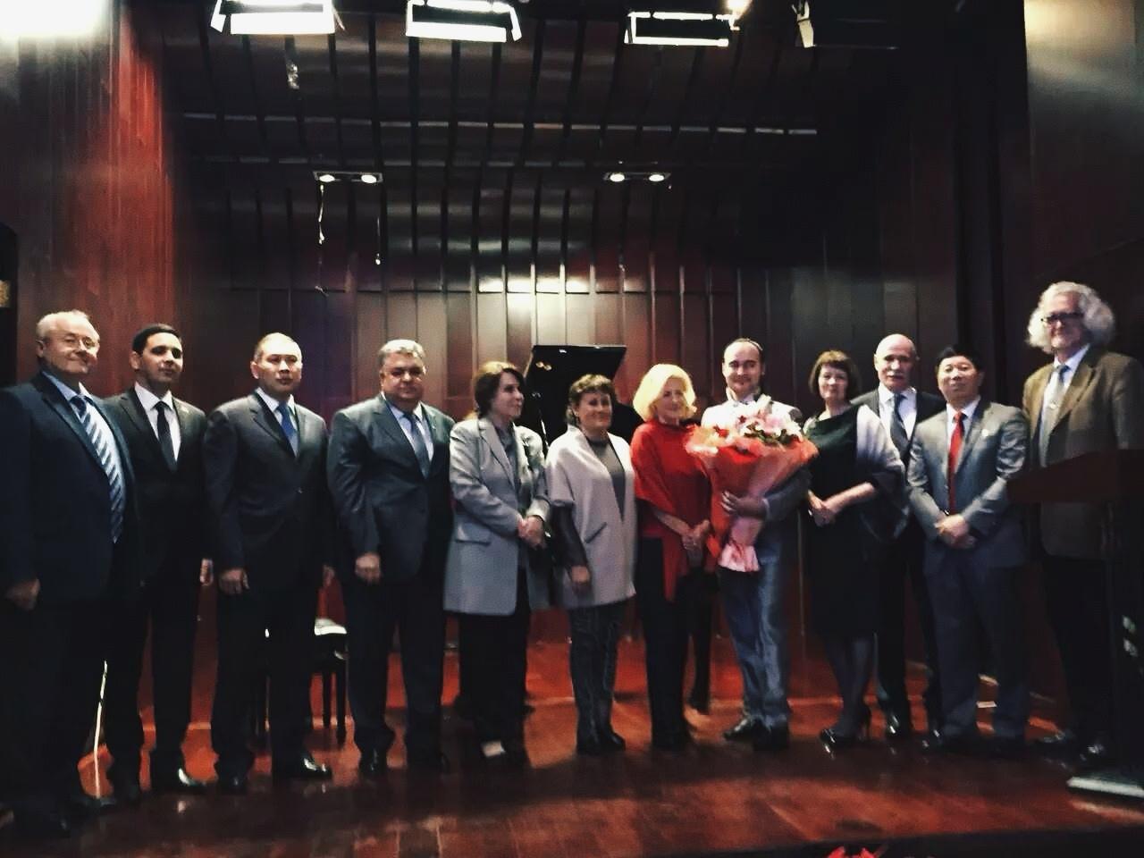 10月20日,刘瀚锴在北京俄罗斯文化中心举办!白俄罗斯暨欧洲著名男高音歌唱家弗拉基米尔个人演唱会!期间,白俄罗斯驻华大使布里亚夫妇,俄罗斯驻华大使夫人Denisova,哈萨克斯坦驻华大使努雷舍夫,阿塞拜疆驻华大使拉季夫·甘基洛夫夫妇,白俄罗斯文联主席普佐夫夫妇,文联副主席巴巴克、助理国沙及多个国家驻华外交官出席活动!弗拉基米尔是白俄罗斯乃至欧洲家喻户晓的著名歌唱家,他和世界著名男高音帕瓦罗蒂是同门师兄。意大利政府为表彰他在音乐方面取得的成就,专门送给他私有土地。他曾多次为白俄罗斯总统、俄罗斯总统、德国总理等多国元首现场演唱!