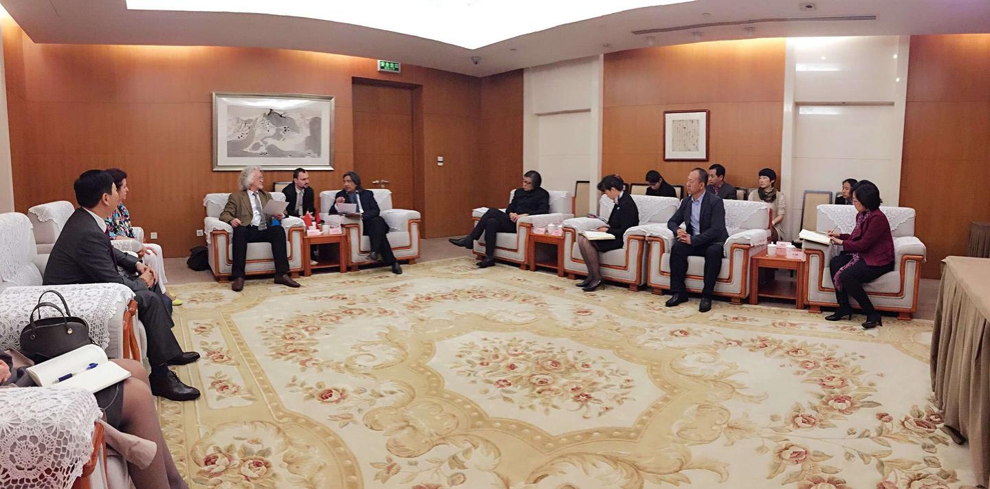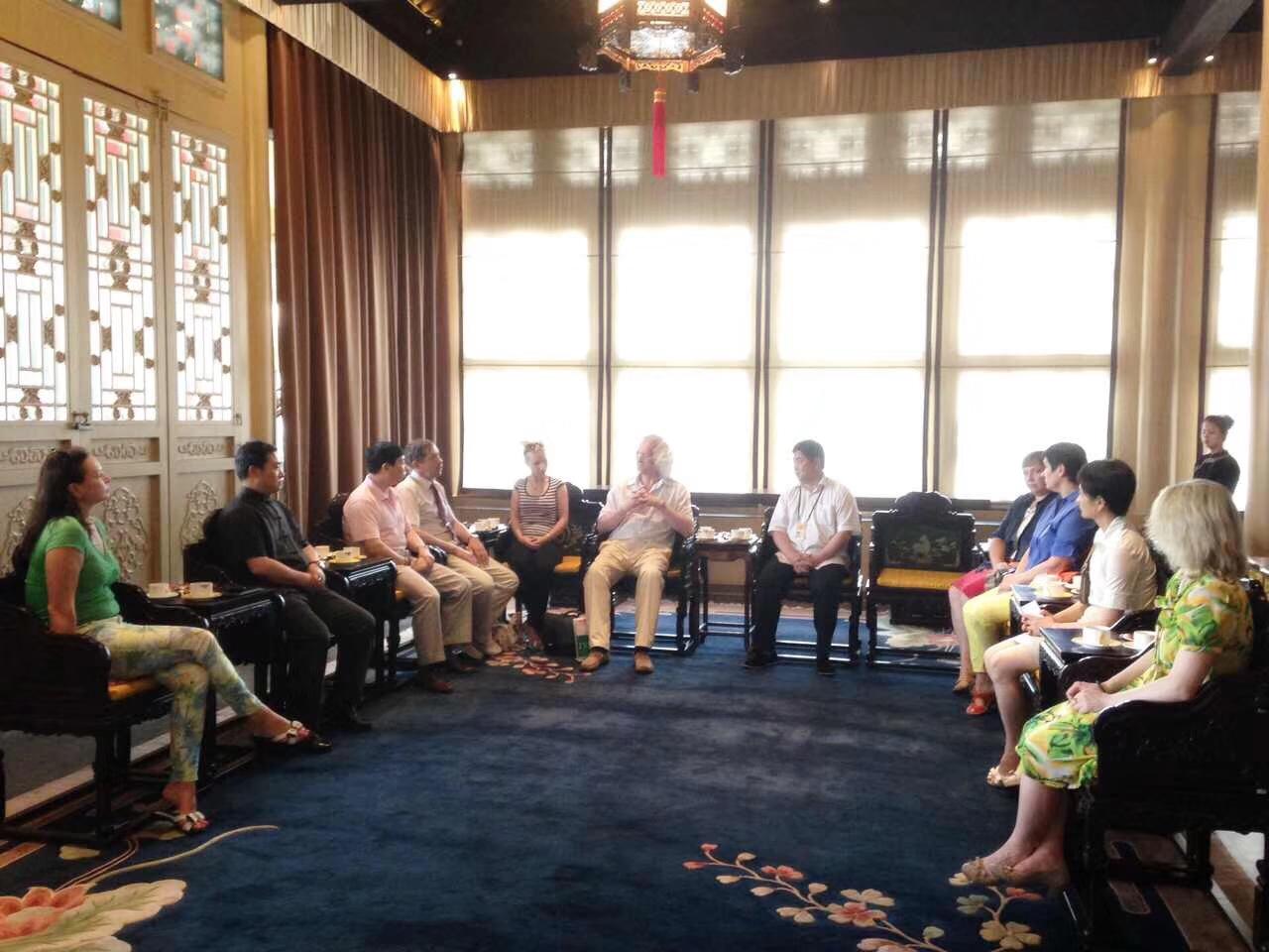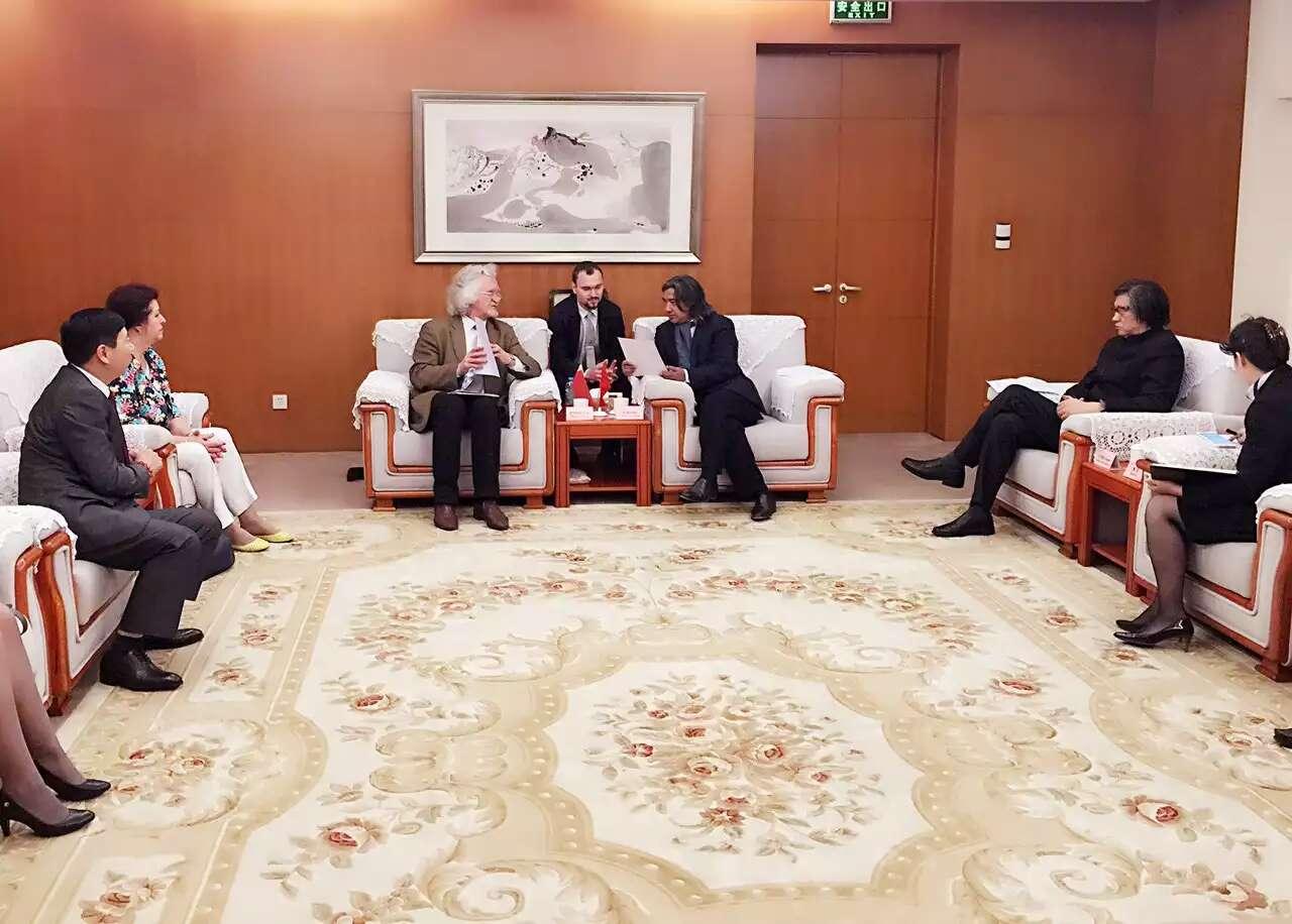 5月31日,应北京故宫博物院邀请,联合国教科文组织的代表、国家美术馆馆长、白俄罗斯国家文联主席普罗克普佐夫、文联副主席巴巴克、白俄罗斯国立艺术大学外办主任莎莎、白俄罗斯美学学会会长娜娃兹罗娃、扬卡库帕拉博物馆馆长列诗克维齐、莫吉廖夫州国立艺术馆馆长、世界美术大展组委会主任色特罗吉娜、国家广播电台记者,著名诗人、作家英娜等人。在刘瀚锴陪同下访问故宫,受到故宫博物院院长单霁翔热情接待!
