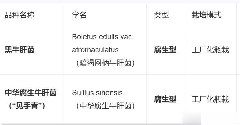 仅限腐生型品种:目前仅黑牛肝菌与中华腐生牛肝菌可工厂化栽培,美味牛肝菌(Boletus edulis)等经典菌根型品种仍无法人工种植,全球尚无突破。
