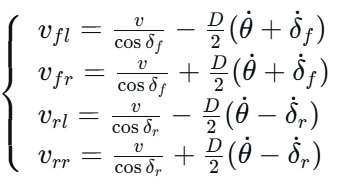 由此推导出四轮速度分配策略: