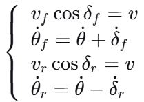 根据纯滚动约束,前后轴的速度和转向角满足:
