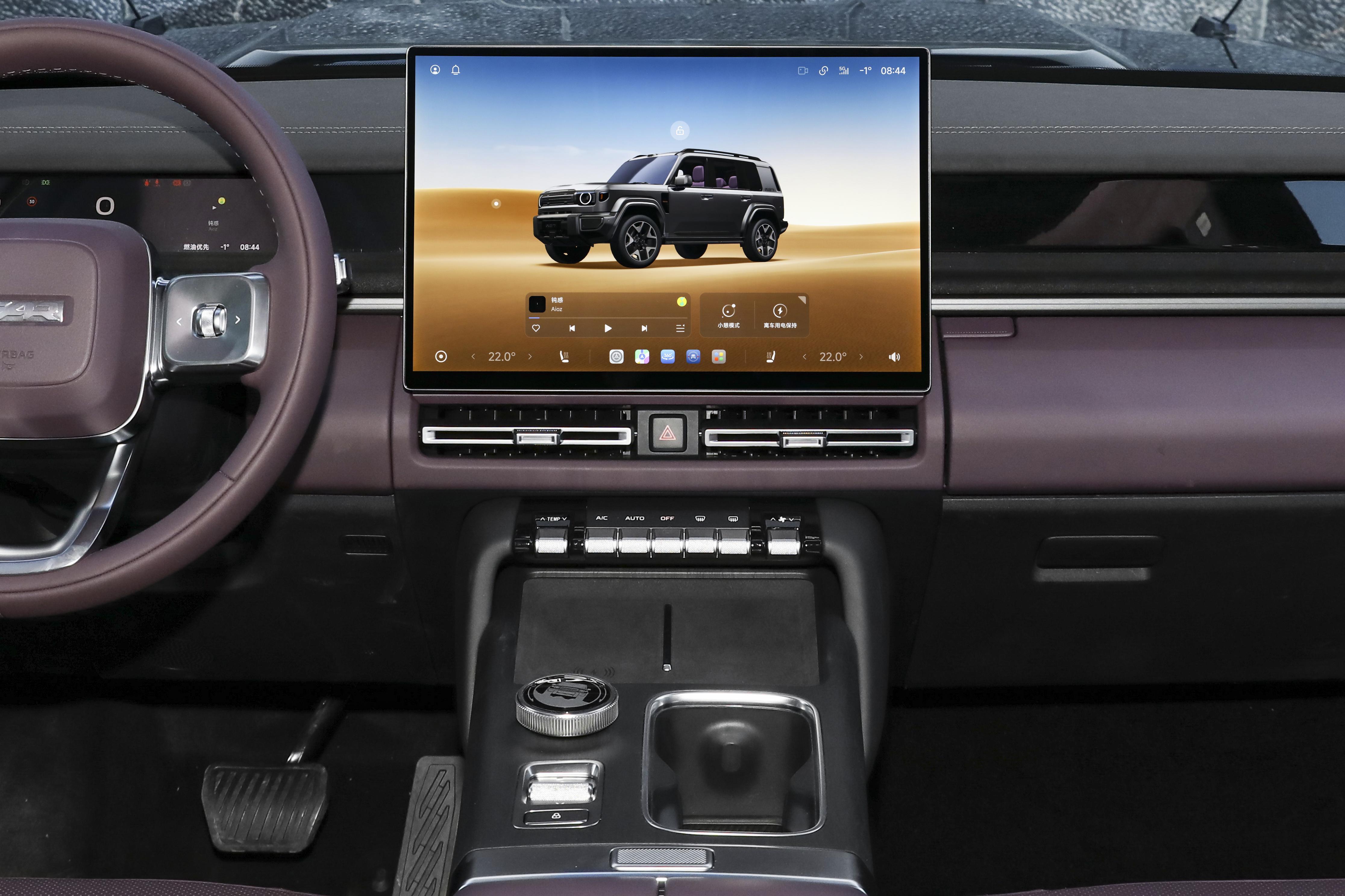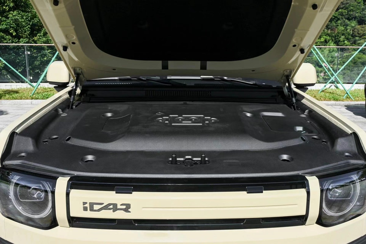搭载高通骁龙8295旗舰车规芯片加持,整个车机操作丝滑不卡顿,切换导航、影音软件都没有延迟,就算孩子玩车机游戏也不会卡。它的内饰整体也彻底颠覆了我对硬派SUV粗糙简陋的印象,木纹饰板配上麂皮绒顶棚,再加上大面积软包材质,质感媲美豪华车,既有硬派机械感,又有家用车的温馨精致。车机功能也很齐全,支持CarPlay、HUAWEI HiCar手机互联,还有5G车联网和OTA远程升级,导航、音乐、语音控制一应俱全。日常用得很多的就是语音控制,喊一句“你好iCAR”就能唤醒,四区域语音识别,主副驾和后排都能精准响应,打开空调、切换导航、播放音乐、开启天窗这些操作动动嘴就行,开车更安全省心,很符合我们年轻人的使用习惯。有一次开车,随口说到“你好iCAR,打开空调”,孩子接着说“再把天窗打开透透气”,坐在后排的老爸起了好奇心,也学着来一句“放一 首韩红的歌”,语音小助手都能一一回应,媳妇坐在边上直点头,说这个功能好,简单好使。