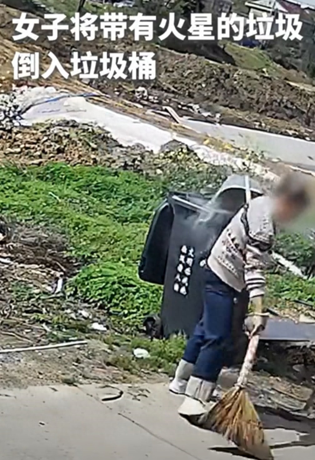 10时17分,女子第一次倾倒带火星的垃圾。10时20分,路人发现险情并成功扑灭。这本应成为这场事故的终点,却变成了更大灾难的起点。