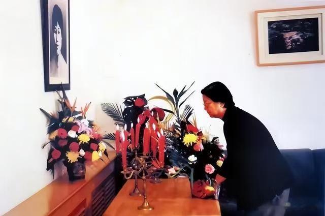 去不了现场的毛岸青和邵华,在家中祭祀妈妈。