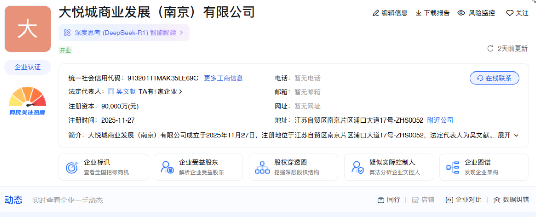 好在2025年大悦城完成港股私有化退市,决策链条大幅缩短,资产统筹与资金调配更灵活,这也是南京项目得以化解股东分歧、顺利推进复工的核心原因。同期成立的大悦城商业发展(南京)有限公司,注册资本9亿元,也为项目后续建设与运营提供了实打实的资金保障。