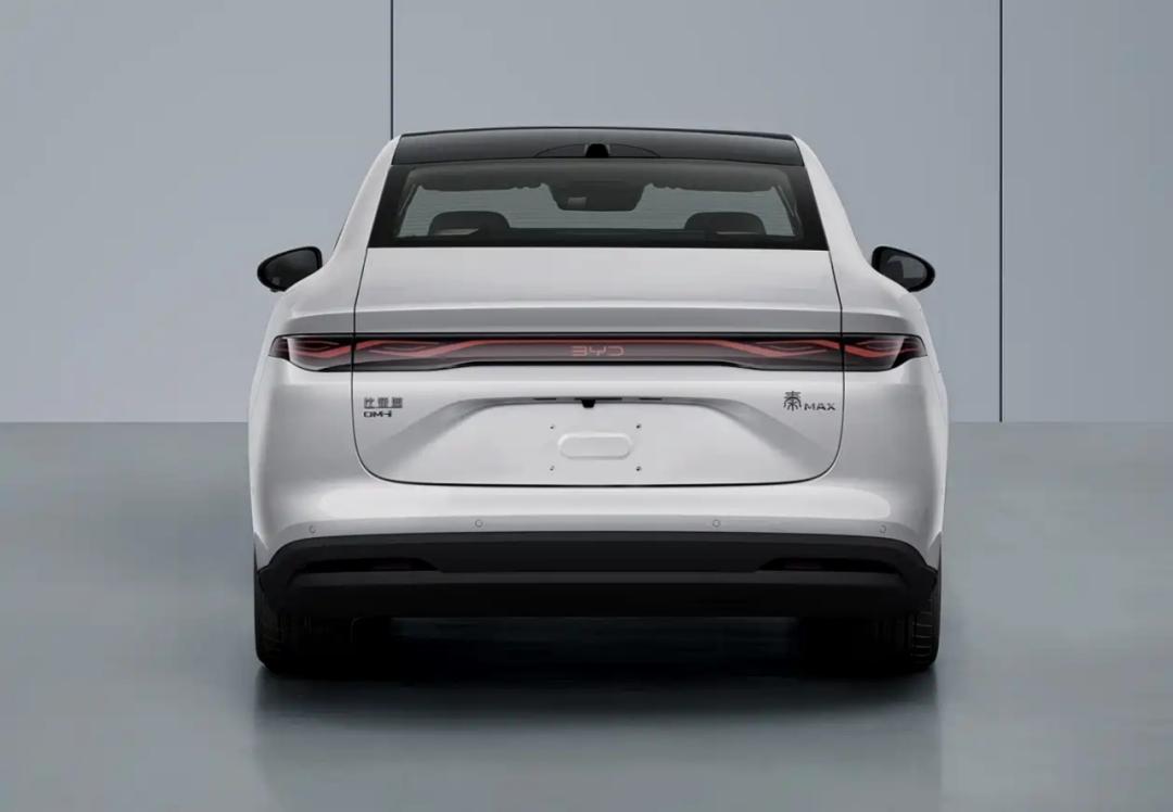 车尾部分,秦MAX DM-i采用标志性的“中国结”贯穿式尾灯组;尾门左侧悬挂“比亚迪DM-i”,右侧悬挂“秦MAX”标识。车身尺寸方面,秦MAX DM-i的长宽高分别为4866/1880/1495mm,轴距为2820mm。