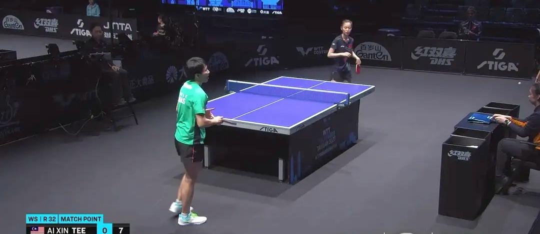 进入第二局,郑爱新试图通过战术调整来扭转局势,增加了击球的力量和回球的风险。然而,状态火热的韩菲儿并未给对手留下任何喘息的空间。她凭借极高的专注度和敏捷的步法,从容化解了郑爱新的搏杀,并利用出色的反手相持能力不断施压。韩菲儿在局中阶段打出了一波连贯的得分高潮,迅速确立领先优势。尽管郑爱新在局末阶段努力追分,但韩菲儿稳扎稳打,以11-4再下一城,将大比分改写为2-0。
