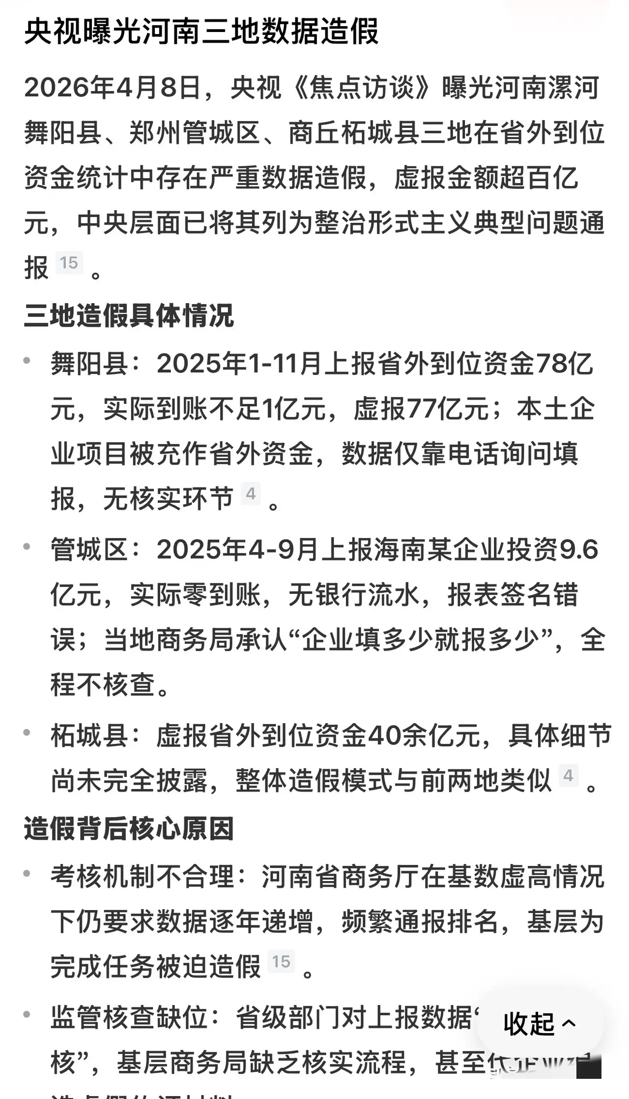 河南漯河市舞阳县、郑州市管城区,还有商丘市柘城县,被中央层面专门通报了:虚报省外到位资金,数额大得吓人。其中有一个县,实际到账外来资金不足1亿元,上报时愣是写成了78亿元。78倍啊朋友们!这不是年终总结里吹个小牛,这是直接把牛吹成了银河系。