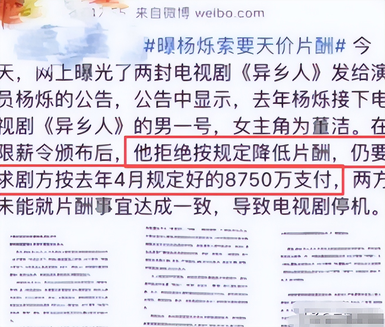而网传他那时候和剧组要的薪资远远超过了标准,虽然说不知道是不是真的是他说的。