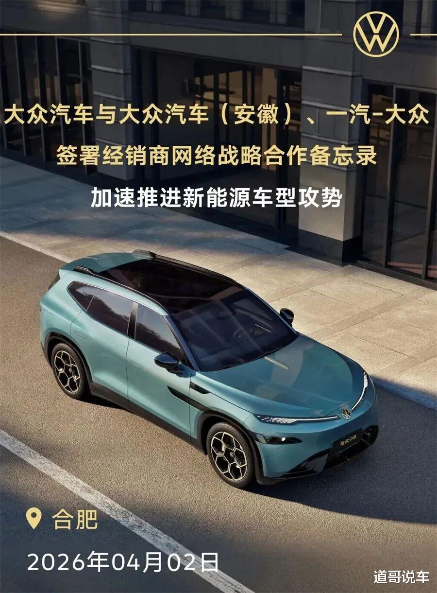 4月2日,大众安徽官方消息称,大众中国、大众安徽与一汽-大众签署经销商网络战略合作备忘录。双方将在一汽-大众部分经销商推出“店中店”模式,展示和销售大众安徽最新新能源车型,与众08将成为双方合作的首款车型。