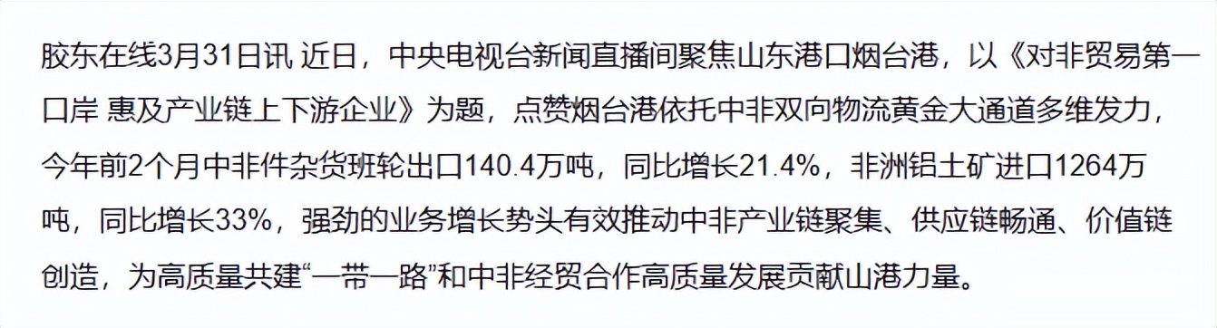 这种转变无疑是极其成功的,正如烟台港最近的一组数据所展示的那样:今年前两个月,烟台港中非班轮货运量增长了31.8%,出口非洲的工程机械和汽车零部件达到了140.4万吨。