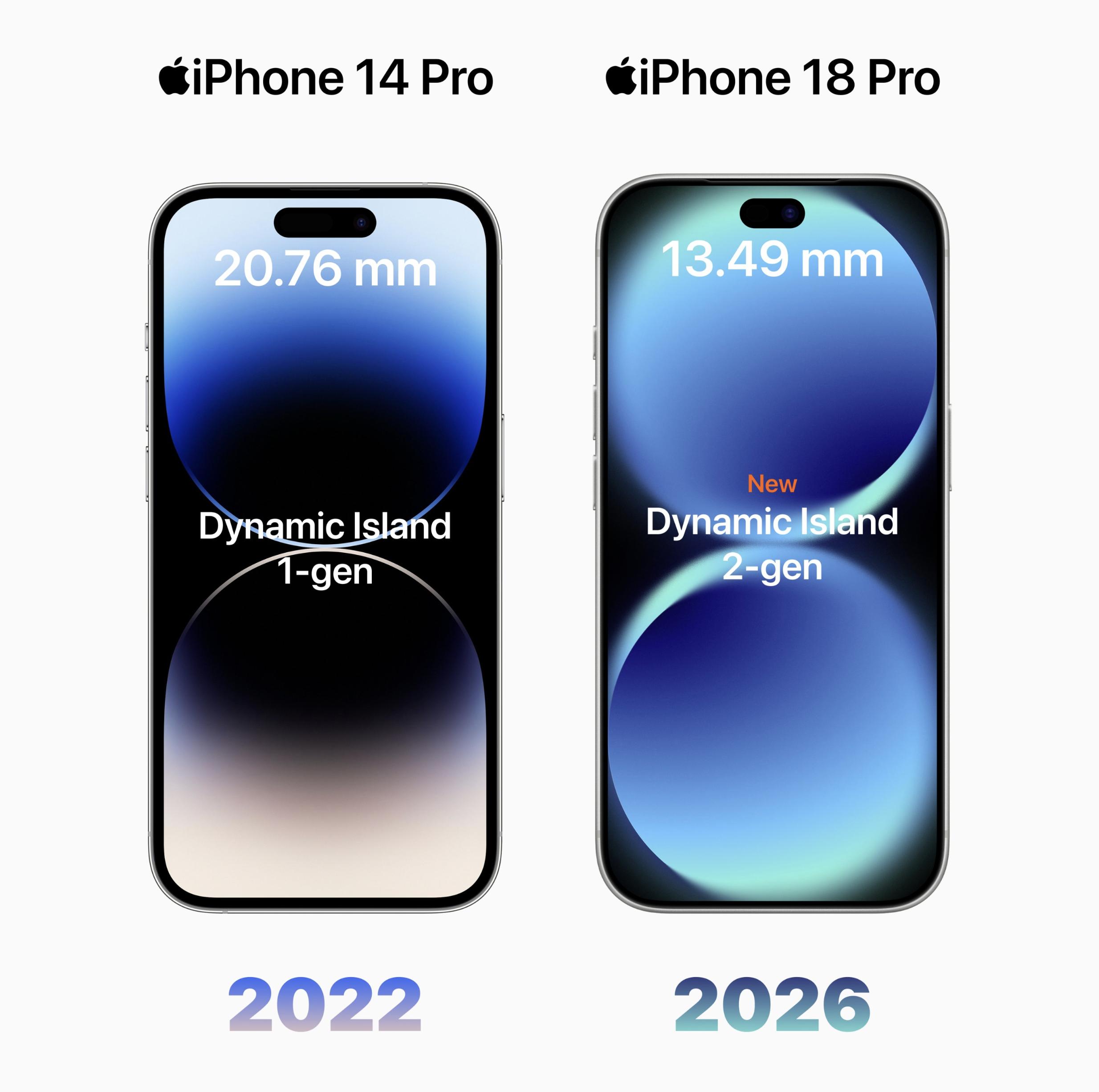 在外观设计上,iPhone 18 Pro 另一项值得关注的变化,是灵动岛有望进一步缩窄。消息称,苹果可能将部分 Face ID 组件移至屏幕下方,从而减少开孔面积。渲染图如下: