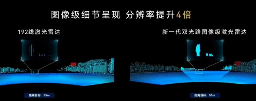 首先是最直观的激光线束的数量,由华为当下主力的192线大幅提升到了896线,意味着激光雷达的探测精度、分辨率大幅提升。