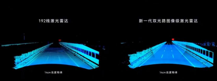 另外,华为新一代激光雷达对远距离小体积障碍物的识别能力也大幅提升,能够做到120米外识别出14cm高障碍物的能力。而此前192线激光雷达,则最高只能在80米外识别出30cm的物体。