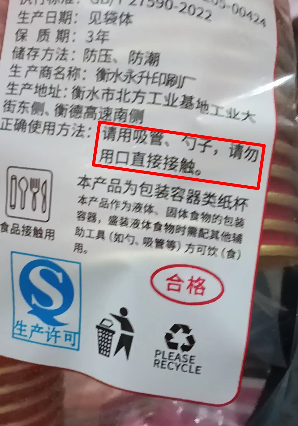 2. 小字标注暗藏免责陷阱:外包装用极小字体标注吸管使用提示,刻意弱化提醒效果,一旦消费者直接对口饮用出现不适,商家立刻凭文字说明推卸全部责任;