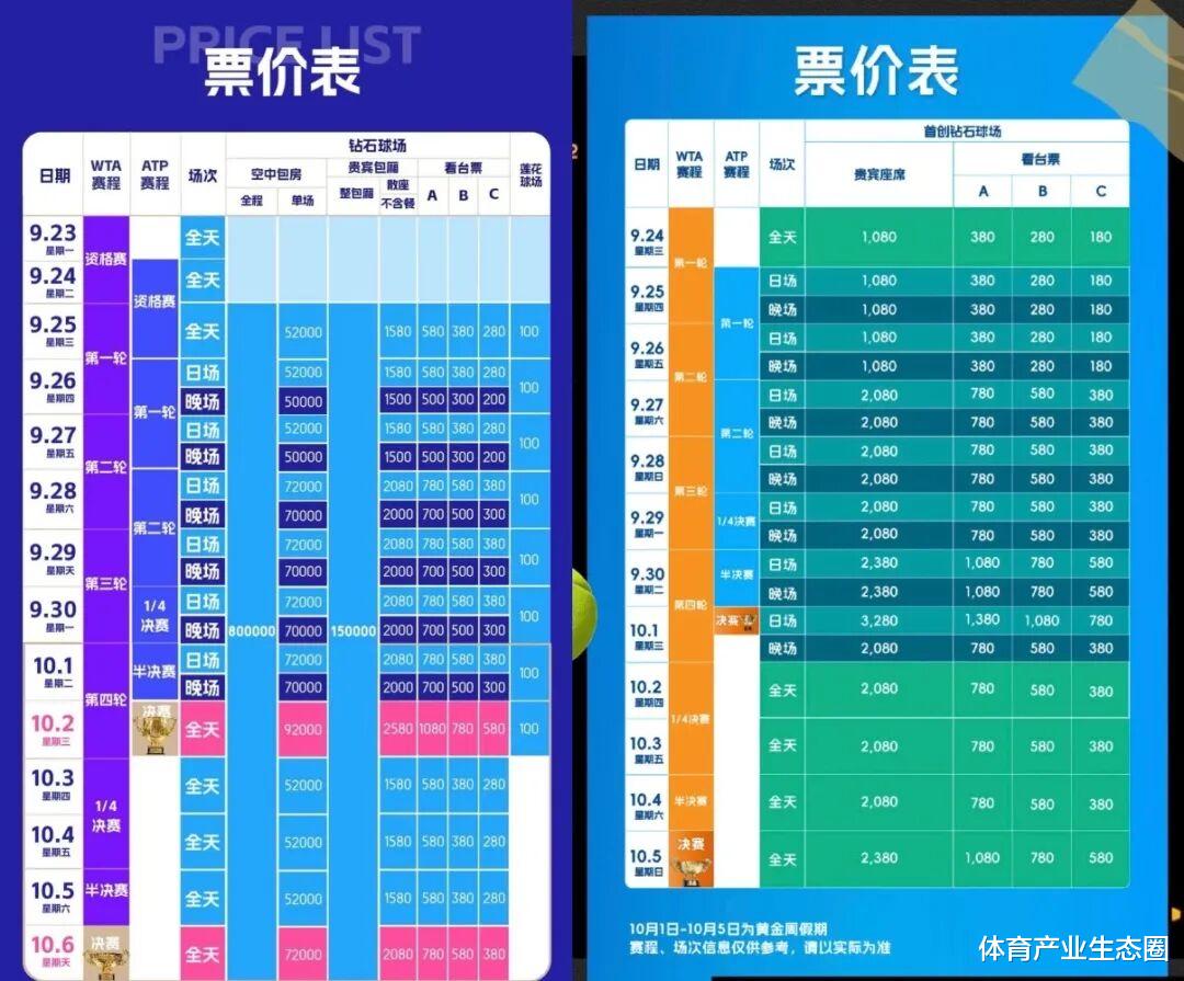 首先,主办方难以在价格上让步。自2024年赛事全面回归以来,三项赛事的票价均出现不同程度的上调。以决赛A区为例,2024至2025年,武网上涨约1.5倍至1080元;中网由1080元上涨至1380元。