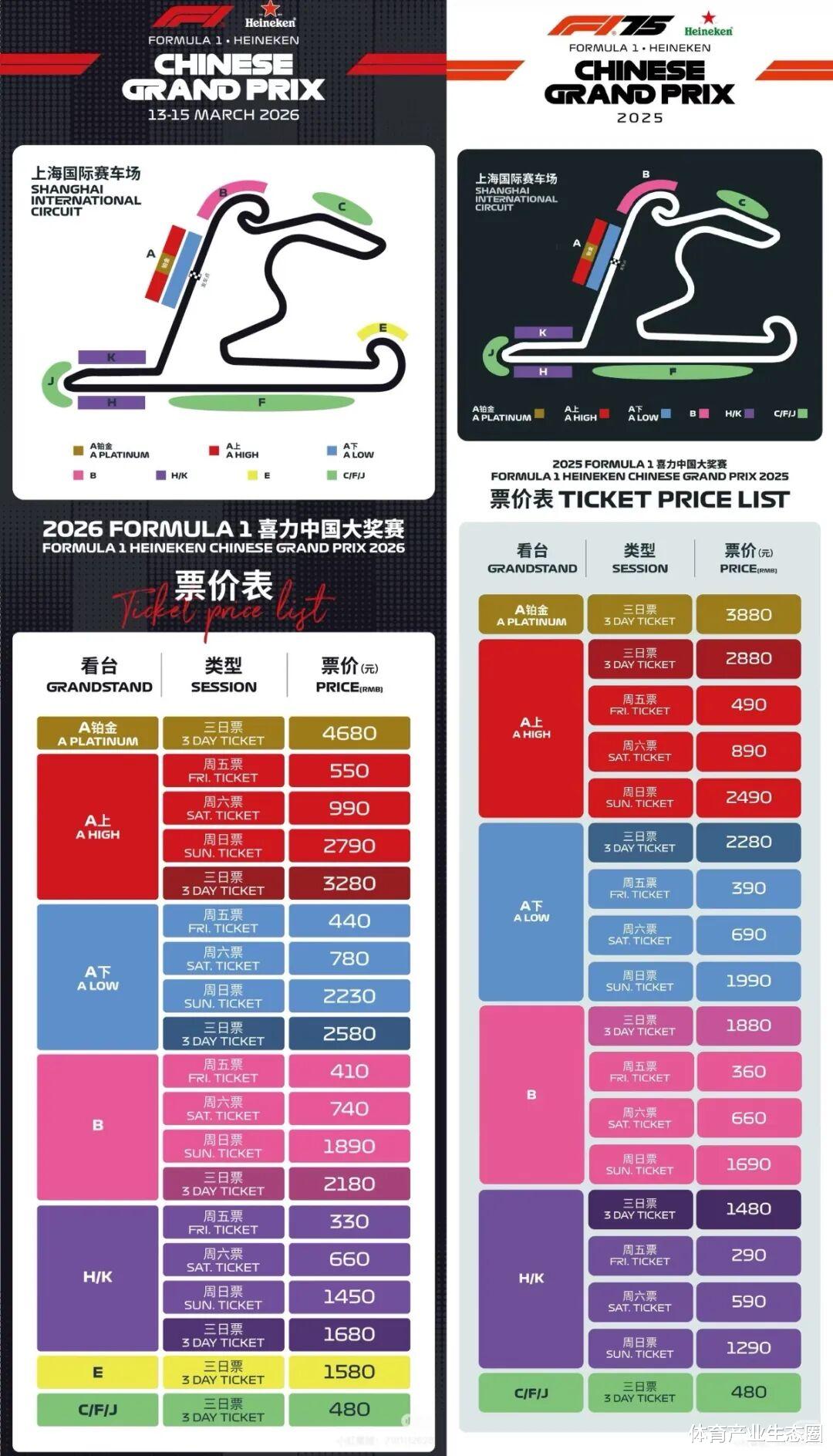 而当一场比赛被拆解成一套关乎「到场」本身的To Do List时,观众对票价的敏感度也在逐渐钝化:美加墨世界杯决赛门票直接迈入「万元时代」;2026年F1中国大奖赛,仅是普通区域就比去年票价上涨超20%;国际乒联澳门世界杯票价看似仅小幅上涨,但对应的观赛区域却明显「降档」。