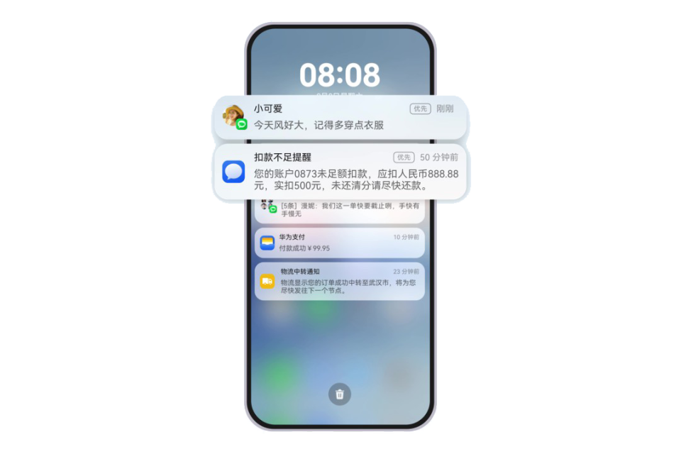 在应用通知泛滥的今天,如何为用户打造更加高效、智能的通知体验——HarmonyOS 6.0.0.328 版本为广大机型用户带来“优先通知”功能,用户通过“设置 > 通知和状态栏 > 优先通知”开启该功能,还可“自定义”添加关键词或选择“智能识别”重要通知,系统即可在锁屏界面、通知中心自动优先展示重要通知,帮助您快速获取关键信息,带给您更高效的体验。