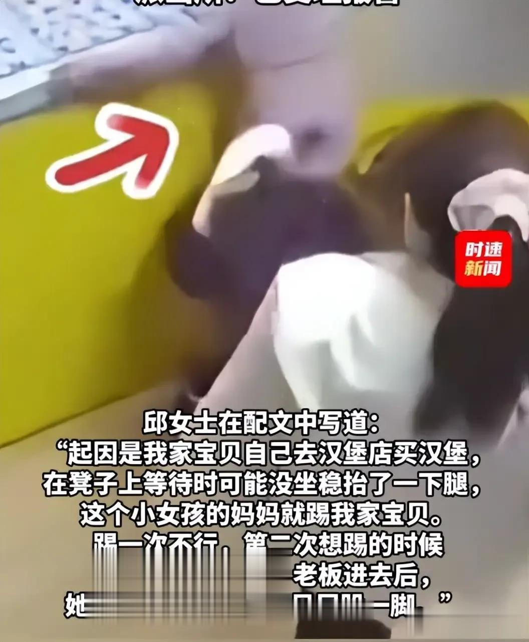 第二天,女童妈妈去汉堡店里监控,画面显示,她的孩子并没有招惹对方,却被对方无缘无故的踹了几下,甚至在踢完后,还转头对自己的孩子笑了笑,仿佛刚才踢的不是一个4岁的孩子,而是凳子。