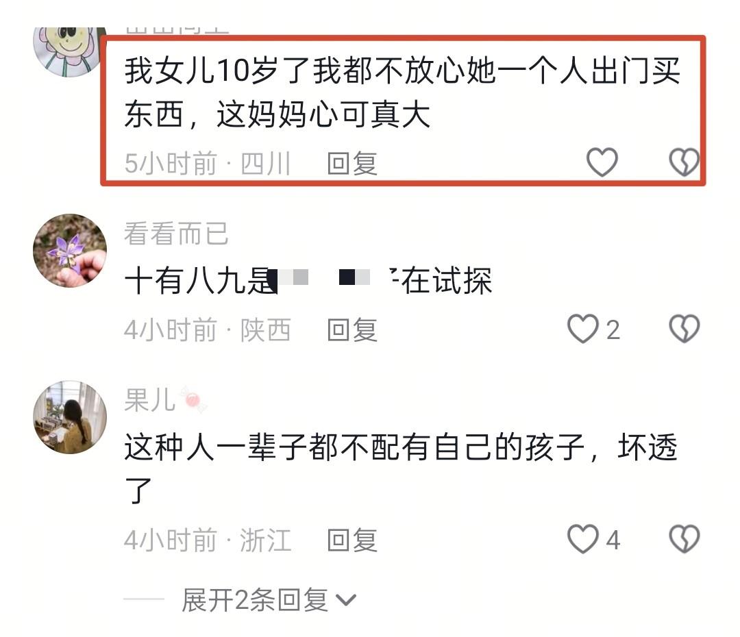 也有网友说: “我女儿10岁了我都不放心她一个人出门买东西,这妈妈心可真大!”
