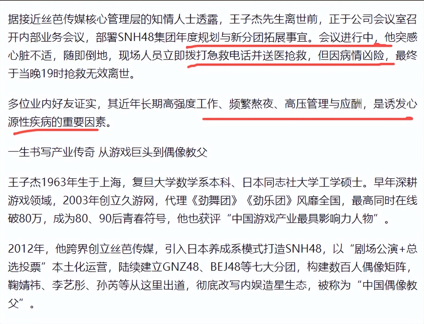 知情人士透露,他这些年一直保持着高强度的工作节奏,频繁熬夜,高压管理,加上数不清的商务应酬。