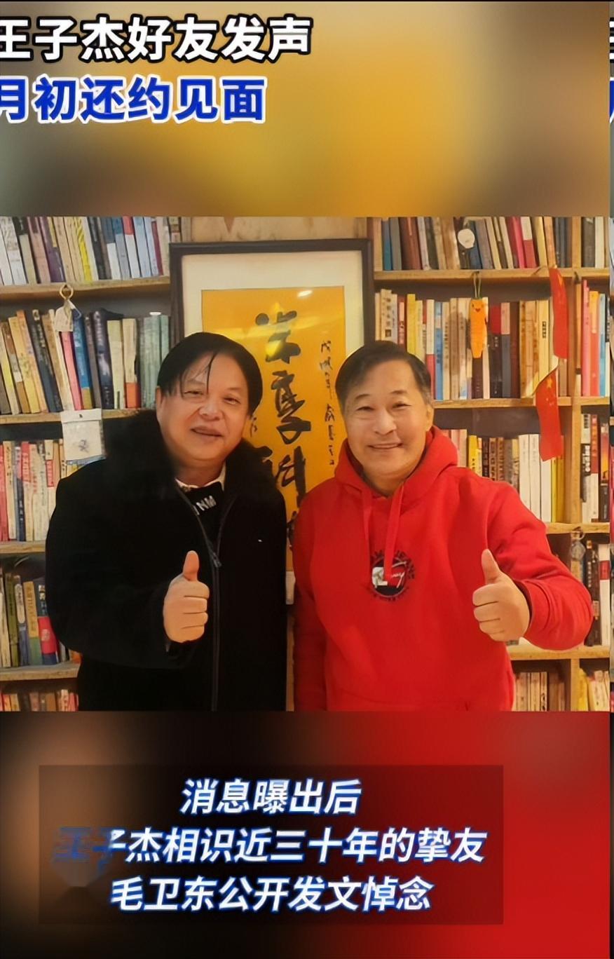 据王子杰的好友“毛委员”发文悼念时透露,两人是近30年的老友,月初还曾通电话相约见面,朋友在电话里应该也注意到了他的状态不佳,劝他注意身体。