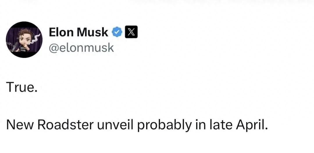 特斯拉又一款超跑新车即将发布,据特斯拉创始人马斯克此前发文称,可能将于4月下旬发布Roadster超级跑车;