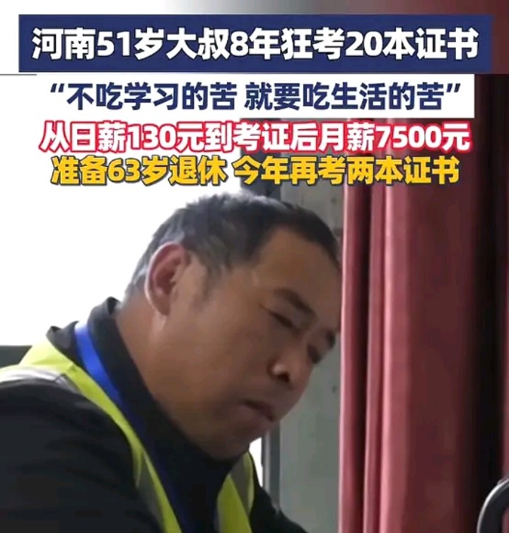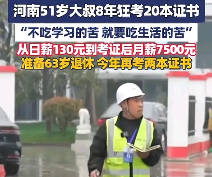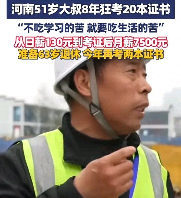 近日,51岁的苏先生在过去的8年时间内考了20本证书这事迅速发酵,登上了热搜,也引起了很多网友的关注。