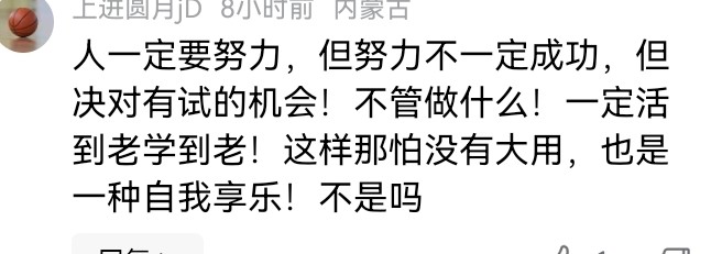 也有网友说到:这是个人追求,这种精神确实值得我们每个人去学习,有这样的精神,我们还怕做不成什么事情呢。