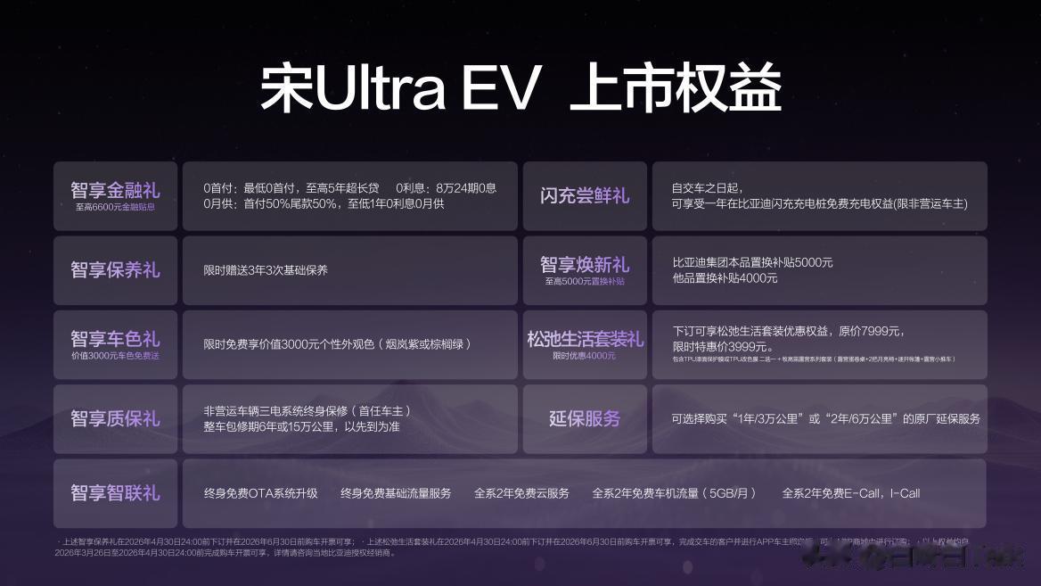 颠覆技术打造越级体验,宋Ultra EV的上市,标志着B级纯电SUV正式迈入"闪充时代"。新车以闪充技术为核心驱动力,在智能、驾控、续航、空间等维度全面进阶,树立同级价值新标杆。配合极具竞争力的价格策略与诚意权益,宋Ultra EV有望成为2026年纯电SUV市场的现象级产品,引领更多用户拥抱便捷、舒适、安全的绿色出行新生活。