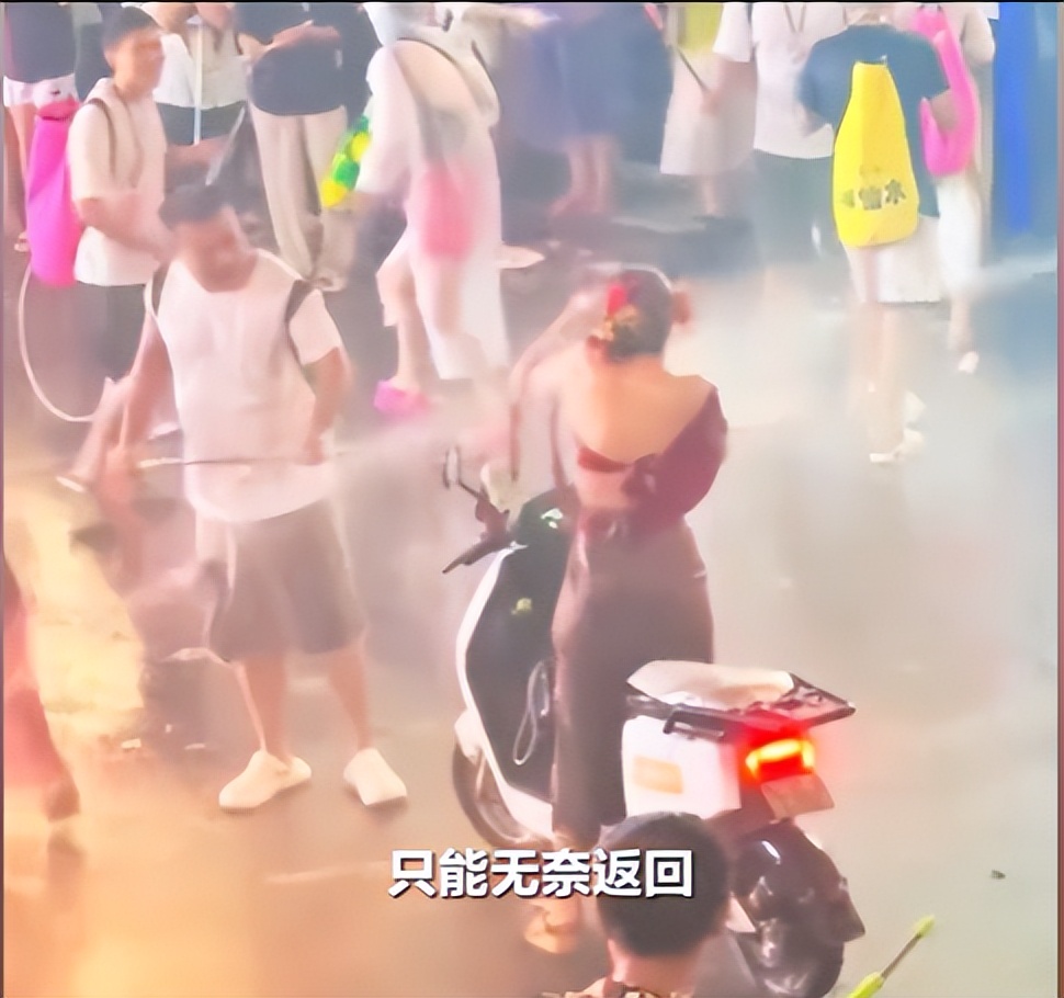 她想跑,好不容易挤出人堆,回头一看同伴还被堵在中间,五六个人围着,水枪从各个方向怼过来,同伴根本出不来。
