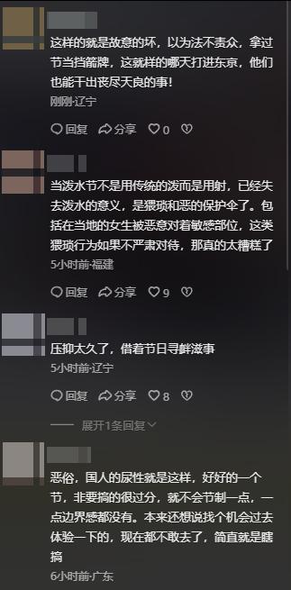 从撕雨衣到射眼睛,从灌车厢到喷酒精,泼水节的“犯罪手法”每年都在升级,而施暴者的逻辑始终如一:这是民俗,这是祝福,玩不起就别来。