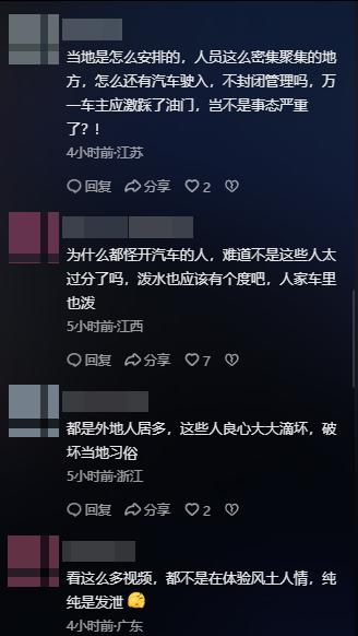 还有网友直言,当地是怎么安排的,人员这么密集聚集的地方,怎么还有汽车驶入,不封闭管理吗,万一车主应激踩了油门,岂不是事态严重了?