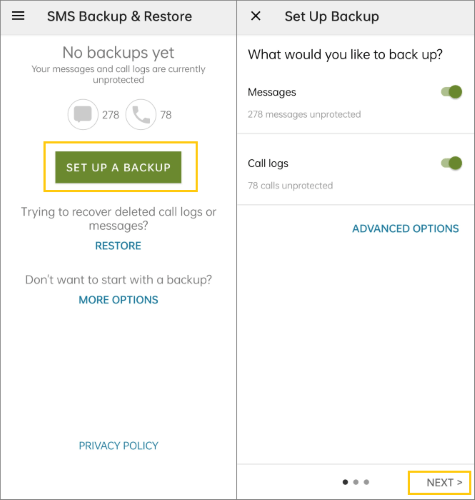 步骤 1. 在您的Android设备上,从 Google Play 商店下载并安装SMS Backup & Restore应用。