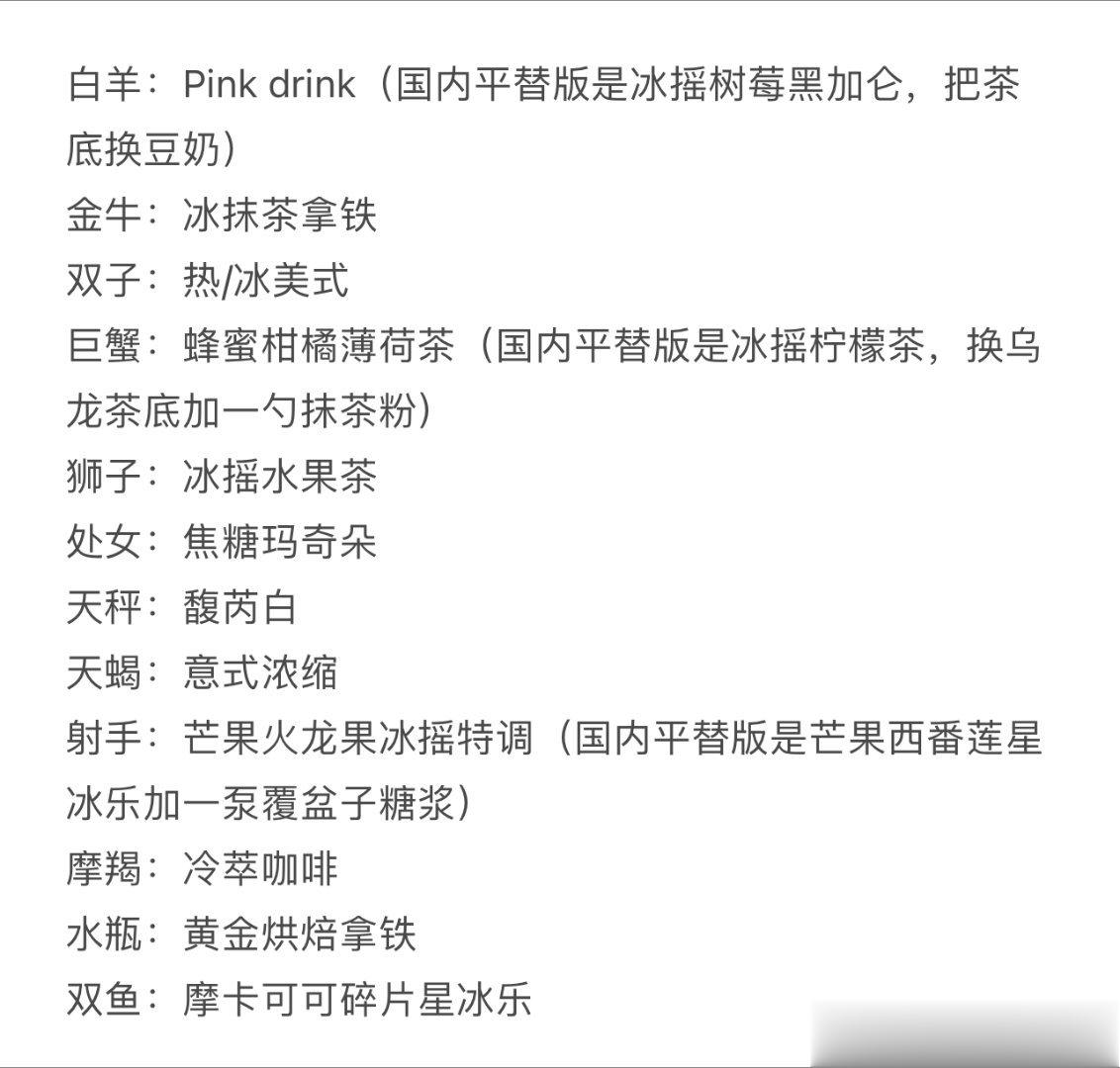 看到个海外版的【十二星座最适合的星巴克饮品】,谁来试验一下符不符合自己星座的口味,反正射手款真的好喝[666]#星座#