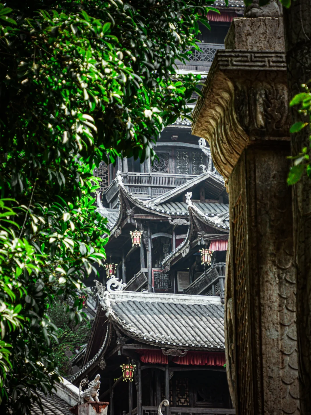 九重天吊脚楼高达48米,共有12层