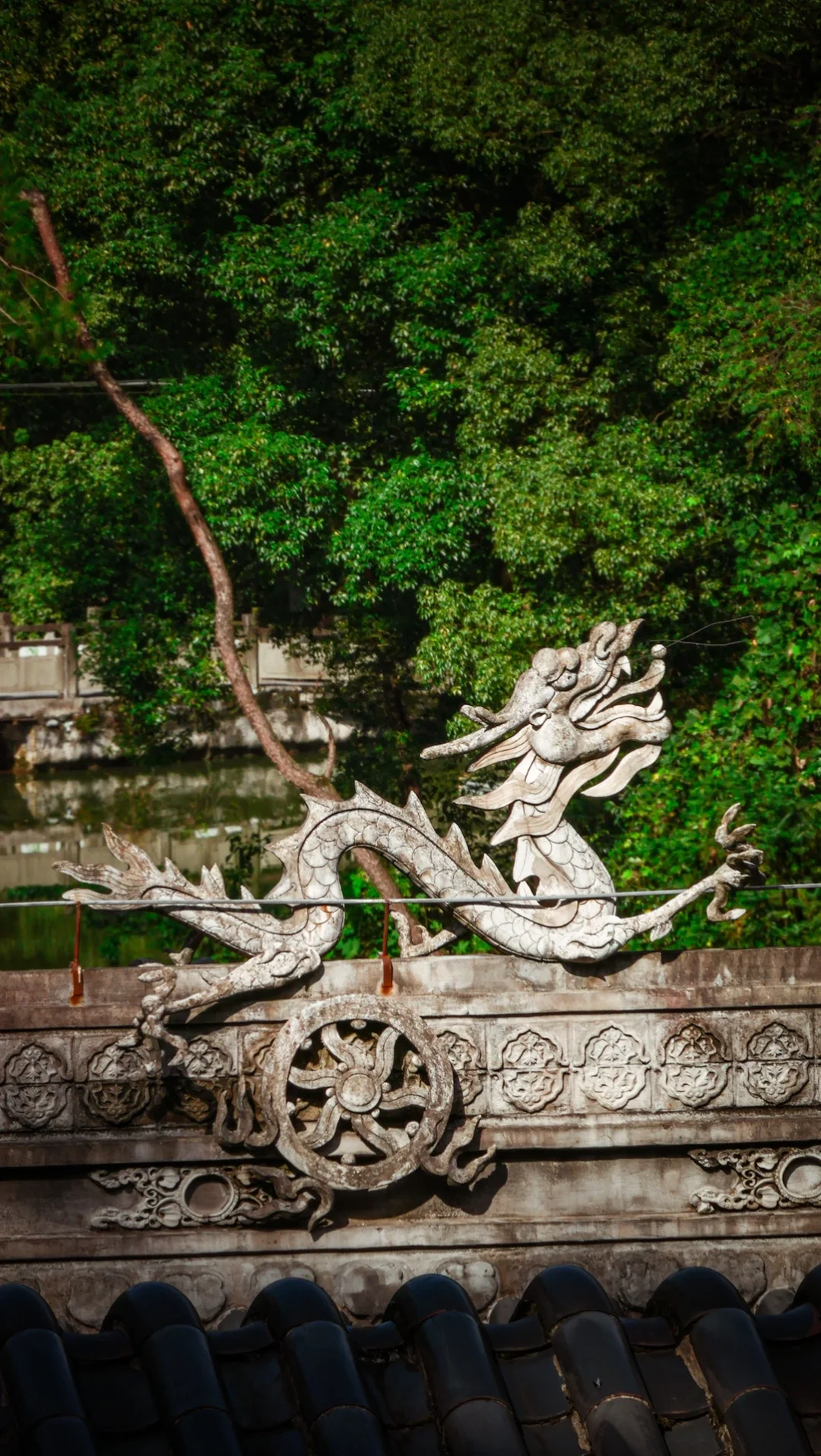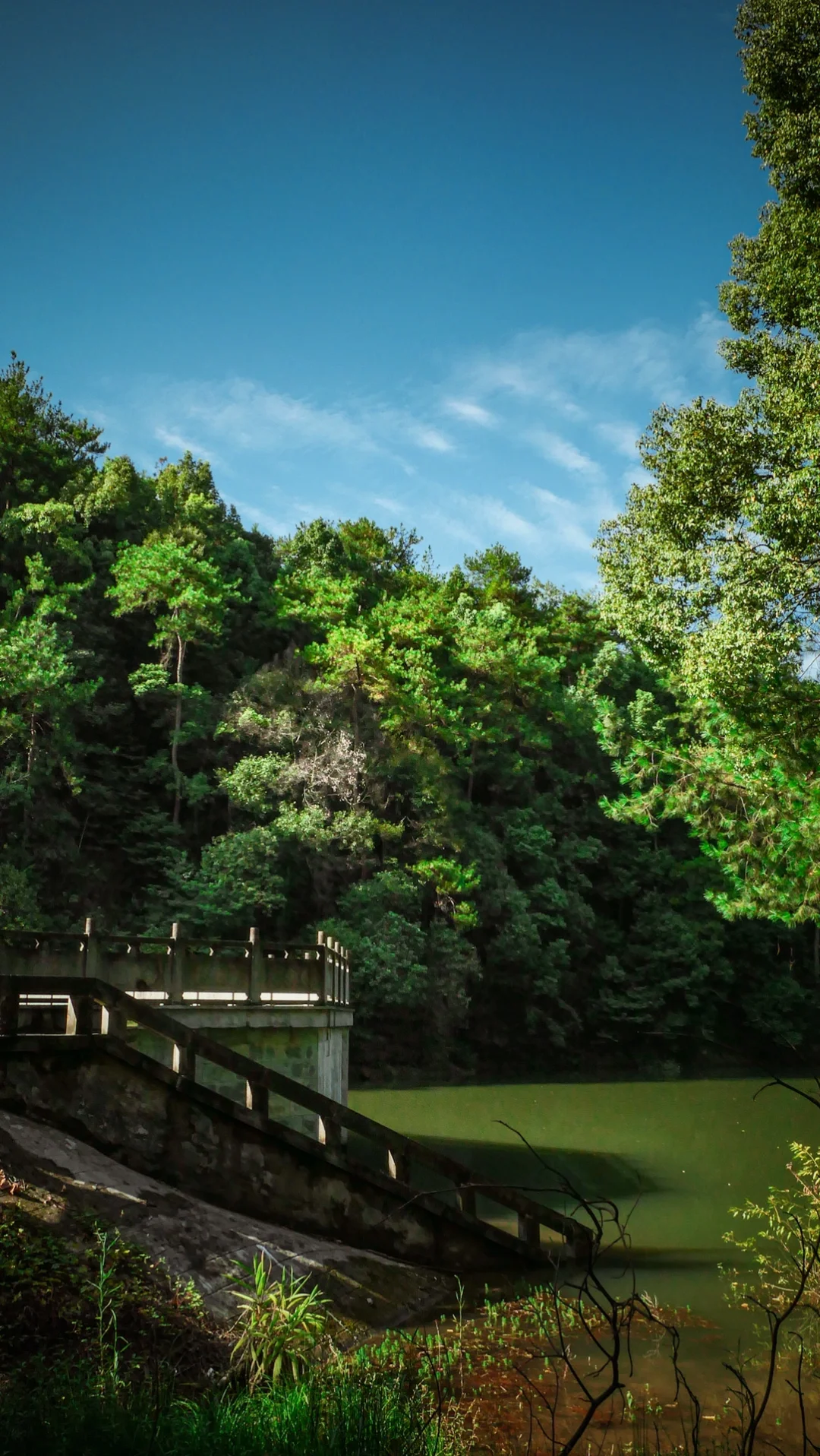 两边山上的树影倒映在水中