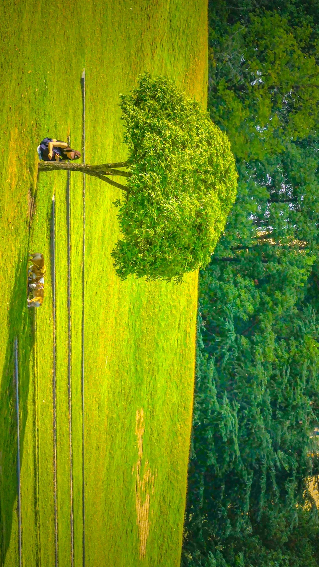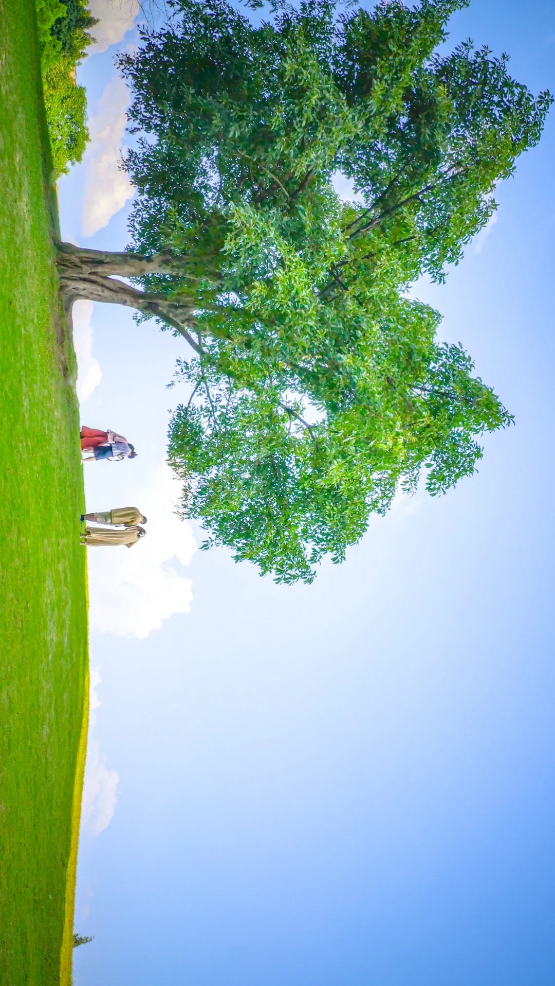 在宽广的大草坪上晒晒太阳