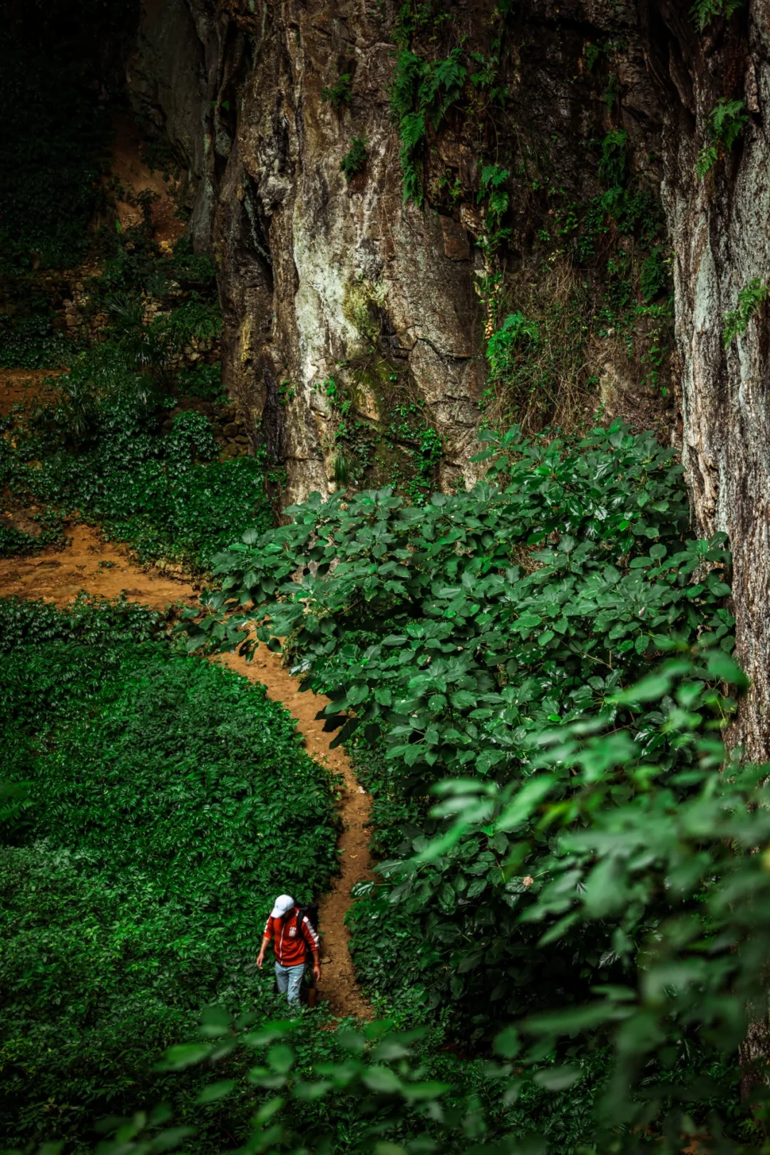 可以沿着石阶下到坑底,我去的时候刚下过雨